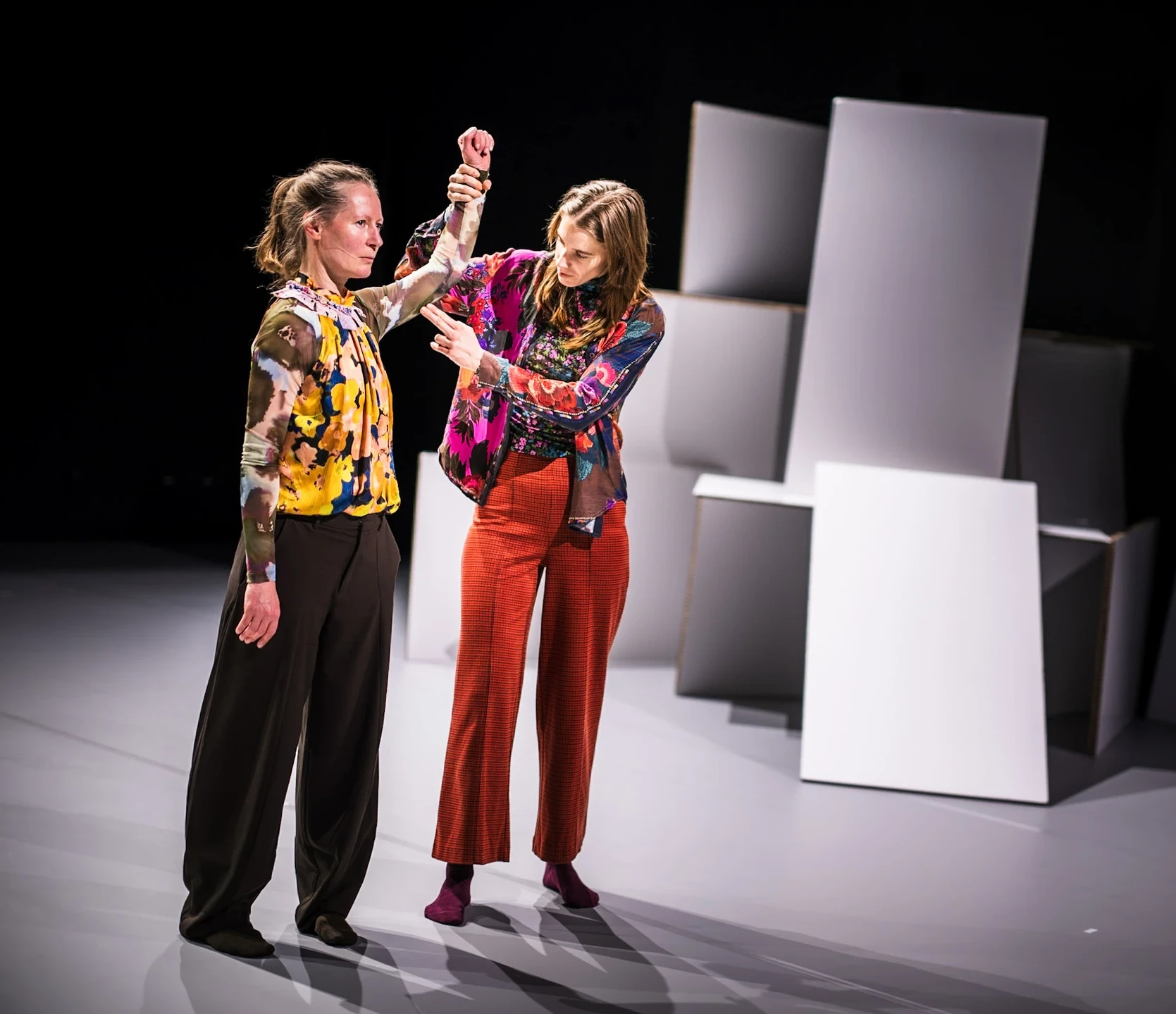 Wir öffnen unsere Augen mit unserer Geburt und schließen sie mit unserem Tod. In der Zeit dazwischen öffnen und schließen sich die Augenlider unmerklich ca. 18.000 Mal am Tag. Leben passiert. Älterwerden auch. Mit ihrem neuen Stück „Augen auf, Augen zu” richtet die Tänzerin und Choreografin Anna Till gemeinsam mit ihrem Team situation productions den Blick auf Formen und Themen des Alters und des Alterns. Dabei steht die Verschränkung der Perspektiven unterschiedlicher Generationen und die Betrachtung des Älterwerdens als andauernder Prozess im Vordergrund. Mit der kongenialen Besetzung der Tänzerinnen Brit Rodemund und Simone Gisela Weber verwandeln sich Lebensfragen eines Menschen und Themen rund um das Älter werden in eine poetische Choreografie der Nähe.