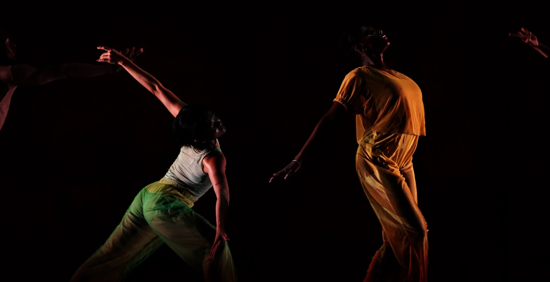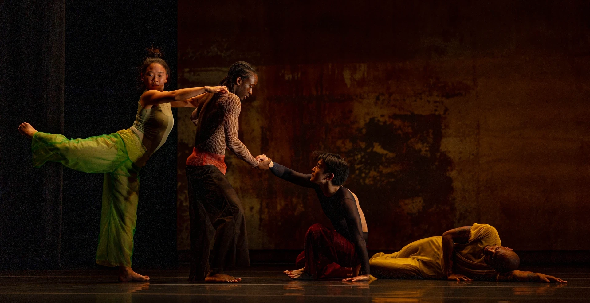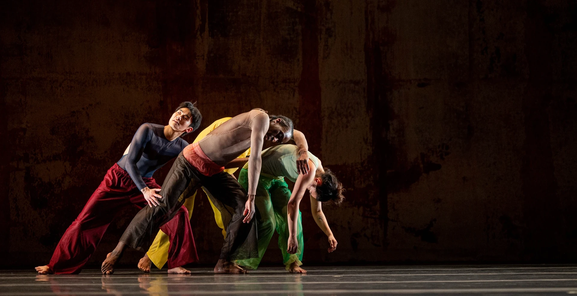 In „2x4“ treten vier Tänzer*innen und zwei Baritonsaxofone in einen intensiven Dialog zwischen Nähe, Kraft und Fürsorge. „Dearest Home (Excerpt)“ ist ein poetisches Stück über Liebe, Sehnsucht und Verlust. Das Solo „Show Pony“ reflektiert Sichtbarkeit, Rollenbilder und Selbstwahrnehmung. Und in der neuen Ensembleproduktion „Meditation Reprise“ verbindet Abraham seine tänzerischen Ursprünge mit privaten und kollektiven Erinnerungen. HELLERAU zeigt dieses Stück in Zusammenarbeit mit dem Festival REAL DANCE Hannover als Weltpremiere.