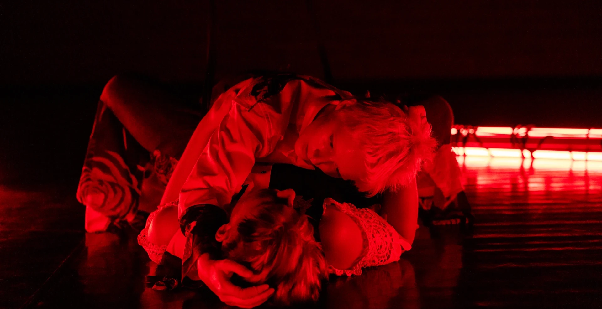 Die Choreografie schöpft aus einem kollektiven Archiv affektiver Tanzformen und romantischer Gesten wie dem Wiener Walzer und Pas de Deuxs aus der Entertainmentindustrie, die von den Performer*innen verkörpert und befragt werden.