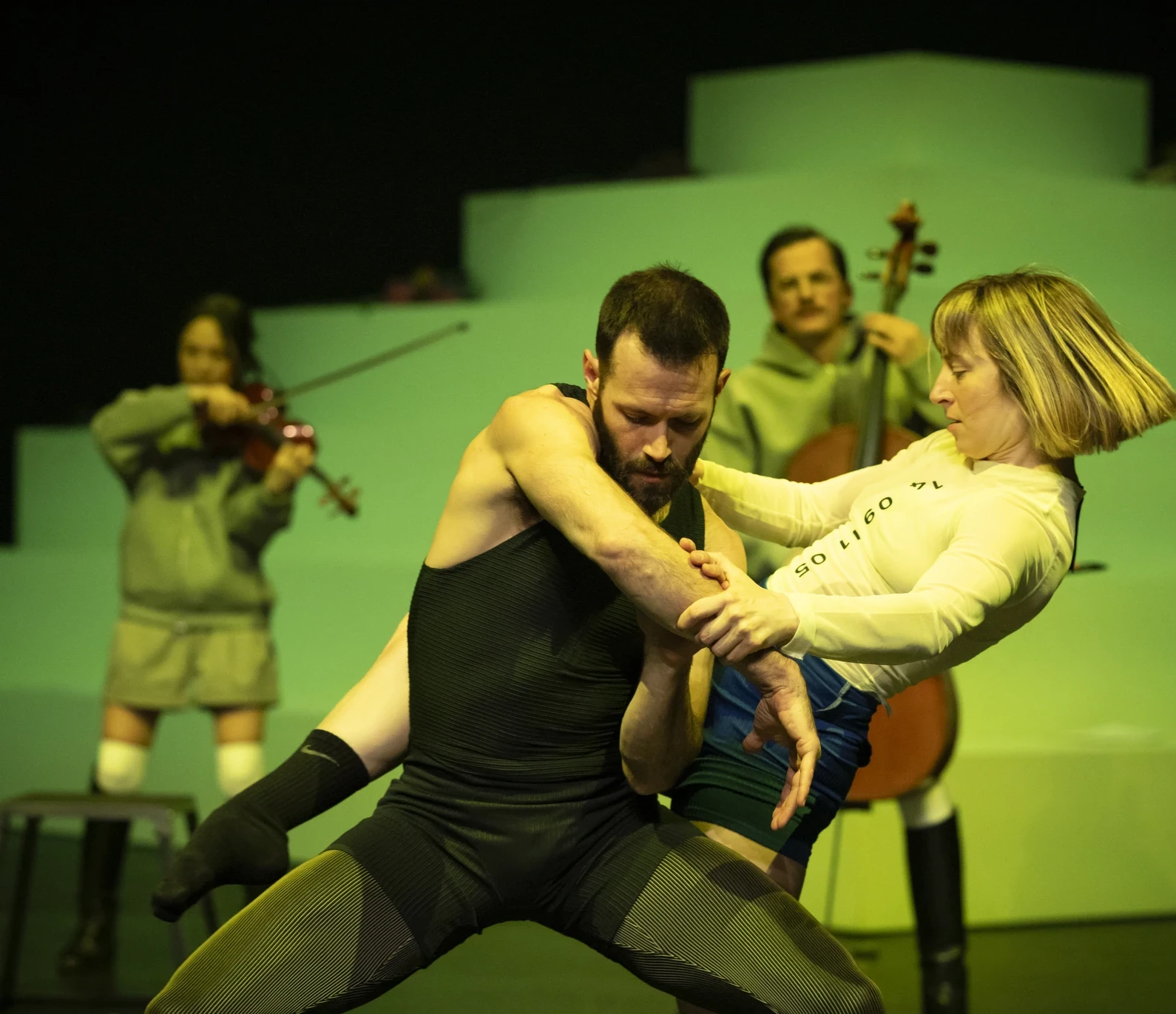 Adam Linders Choreografien verbinden innovative Bewegungsansätze, Virtuosität und Performativität, brechen mit Konventionen und halten der Disziplin selbst den Spiegel vor. Da passt es nur gut, dass er nun gemeinsam mit dem Solistenensemble Kaleidoskop ein Zusammentreffen von Live-Musiker*innen und Tänzer*innen inszeniert. In „TOURNAMENT“ verwandelt sich zu einer Auftragskomposition von Ethan Braun die Bühne in ein Spielfeld, auf dem fünf Tänzer*innen und fünf Musiker*innen den Mythos der harmonischen Einheit zwischen diesen beiden Disziplinen auf die Probe stellen. Die Musik ist eine Konfrontation zwischen akustischem und digitalem Klang – die Konkretheit eines Hundegebells steht der Abstraktion mikrotonaler Harmonie gegenüber. Agonismus oder Wettbewerb liegen vielen kreativen Impulsen zugrunde, und dieses Werk geht über eine oppositionelle Beziehung hinaus, um einen Raum für spielerischen Ausdruck zu öffnen.