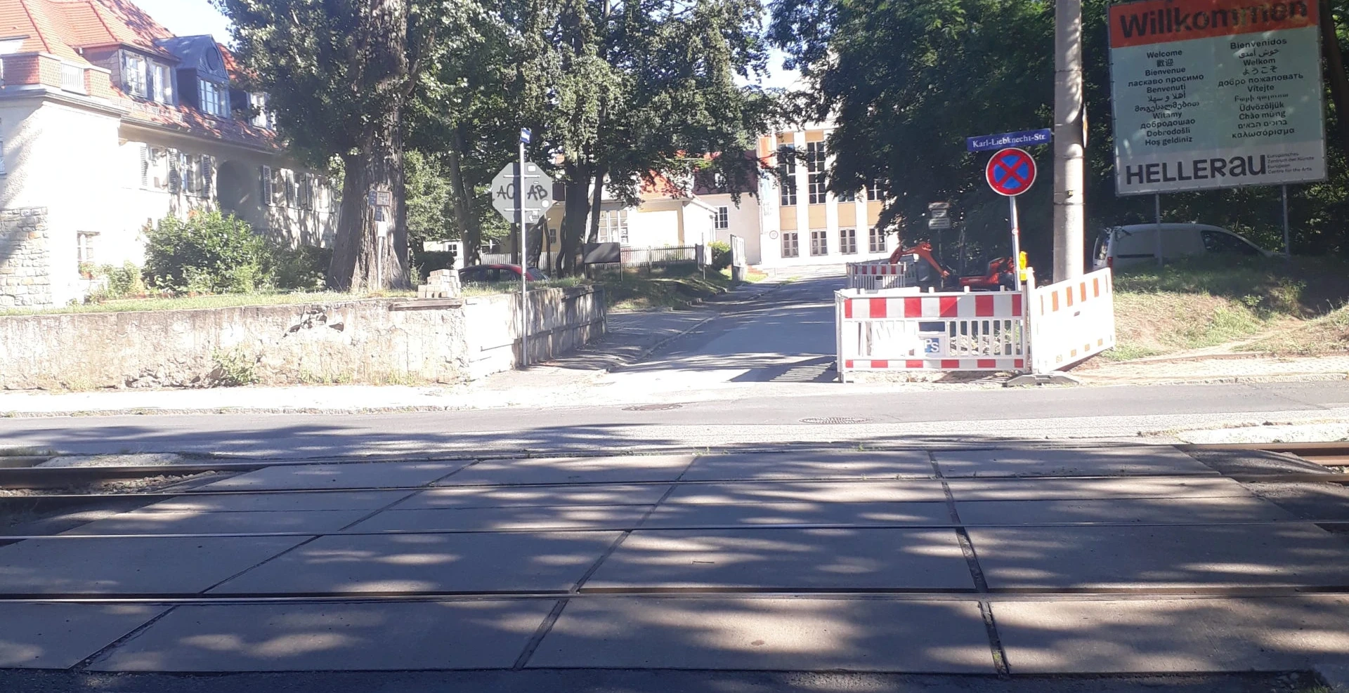 Der Untergrund an der Haltestelle „Festspielhaus Hellerau“ ist mit Kies ausgestattet, der die Mobilität für Rollstuhlfahrer*innen einschränken kann. Eine ca. 6 cm hohe Bordsteinkante und die befahrene Hauptstraße müssen überquert werden. Es gibt keine Ampel. Von der Haltestelle „Festspielhaus Hellerau“ aus sind es ca. 330 Meter bis zum Festspielhaus. Der Weg ist zum Teil uneben und auf Grund von Schotterbelag nicht gut berollbar.