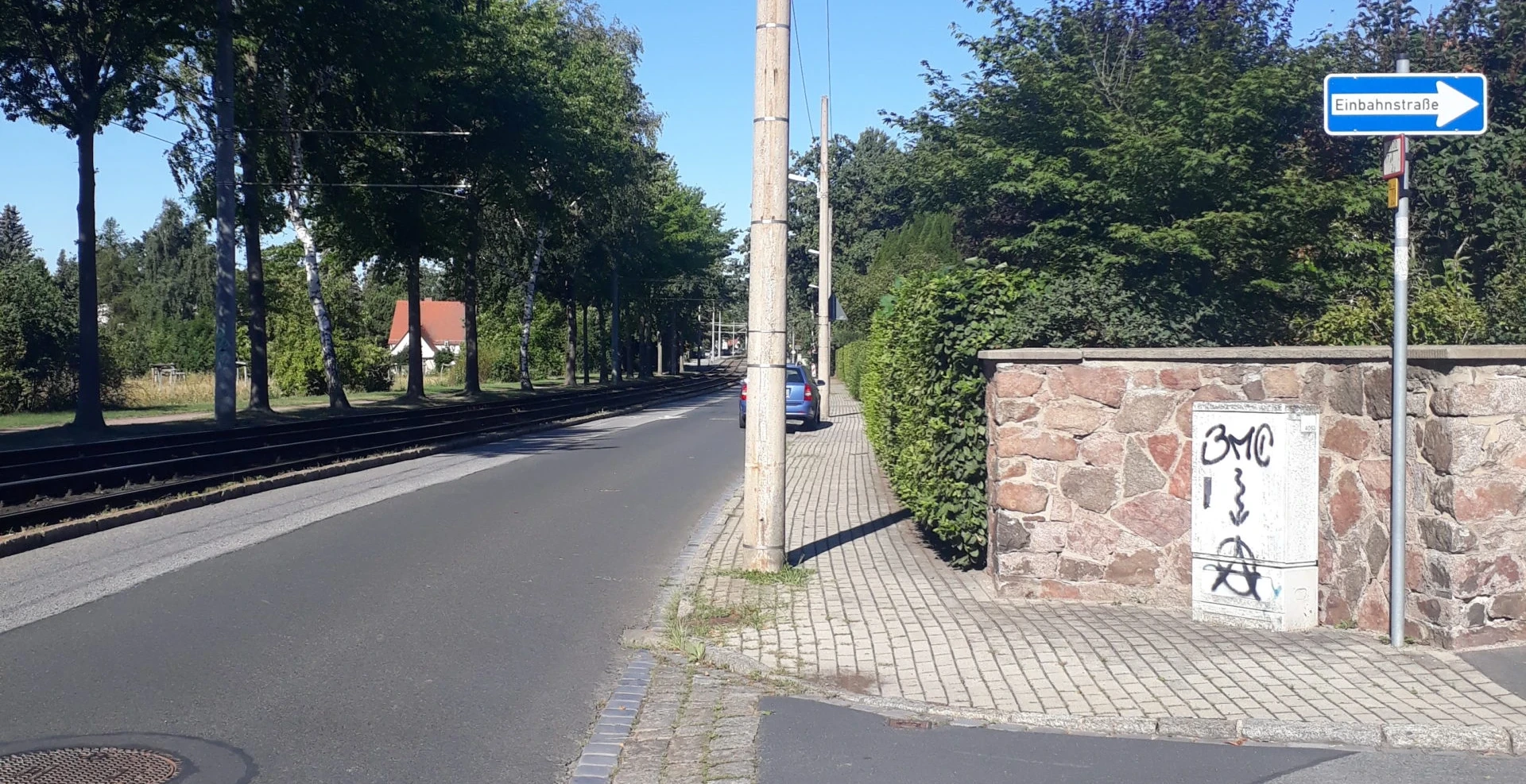 Um von der Haltestelle „Heinrich-Tessenow-Weg“ zum Festspielhaus Hellerau zu gelangen, folgen Sie dem Gehweg der Hauptstraße in Fahrtrichtung auf der rechten Straßenseite aufwärts. Der Weg von der Haltestelle bis zum Festspielhaus beträgt 550 Meter und ist somit länger, als von der Haltestelle „Festspielhaus Hellerau“, jedoch besser berollbar.