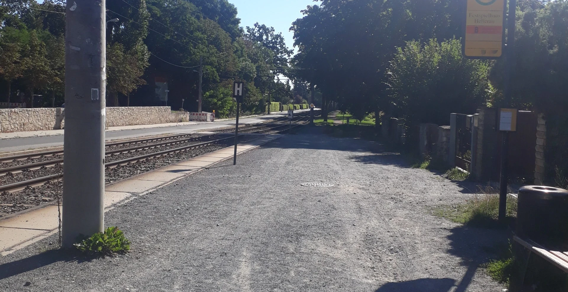 Um das Festspielhaus HELLERAU mit der Straßenbahn zu erreichen, gibt es zwei Ausstiegsmöglichkeiten: