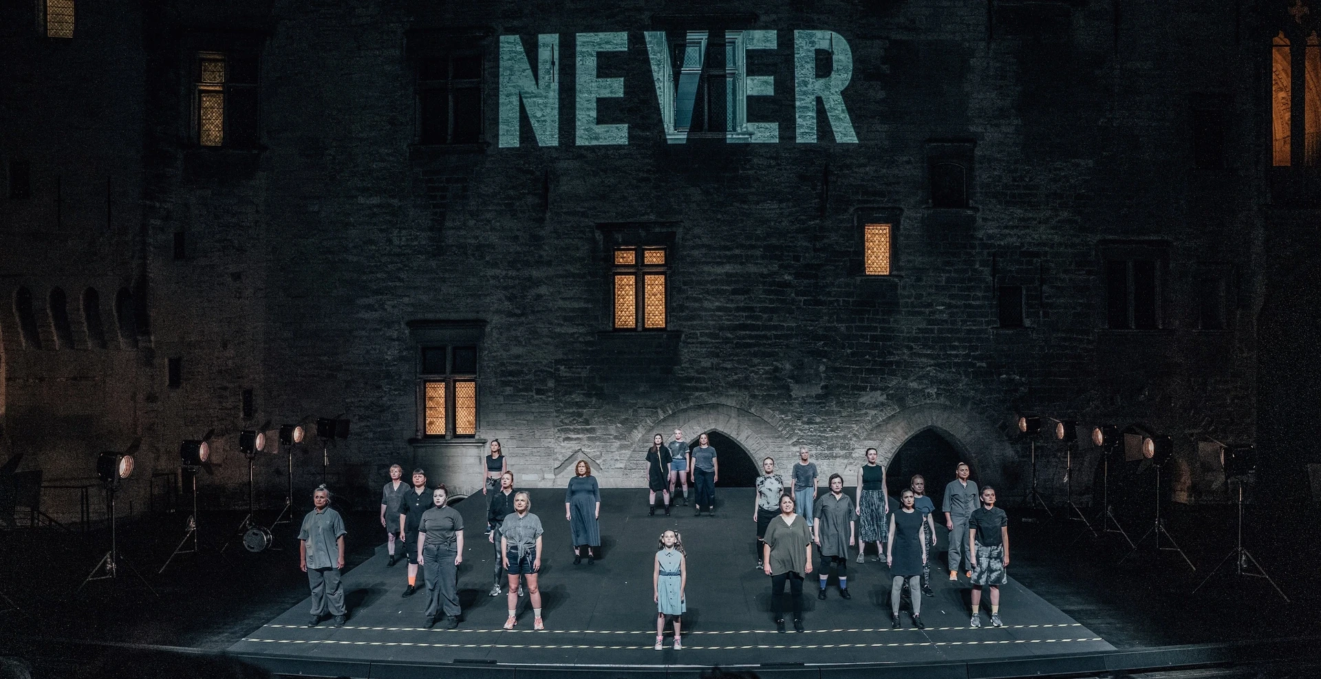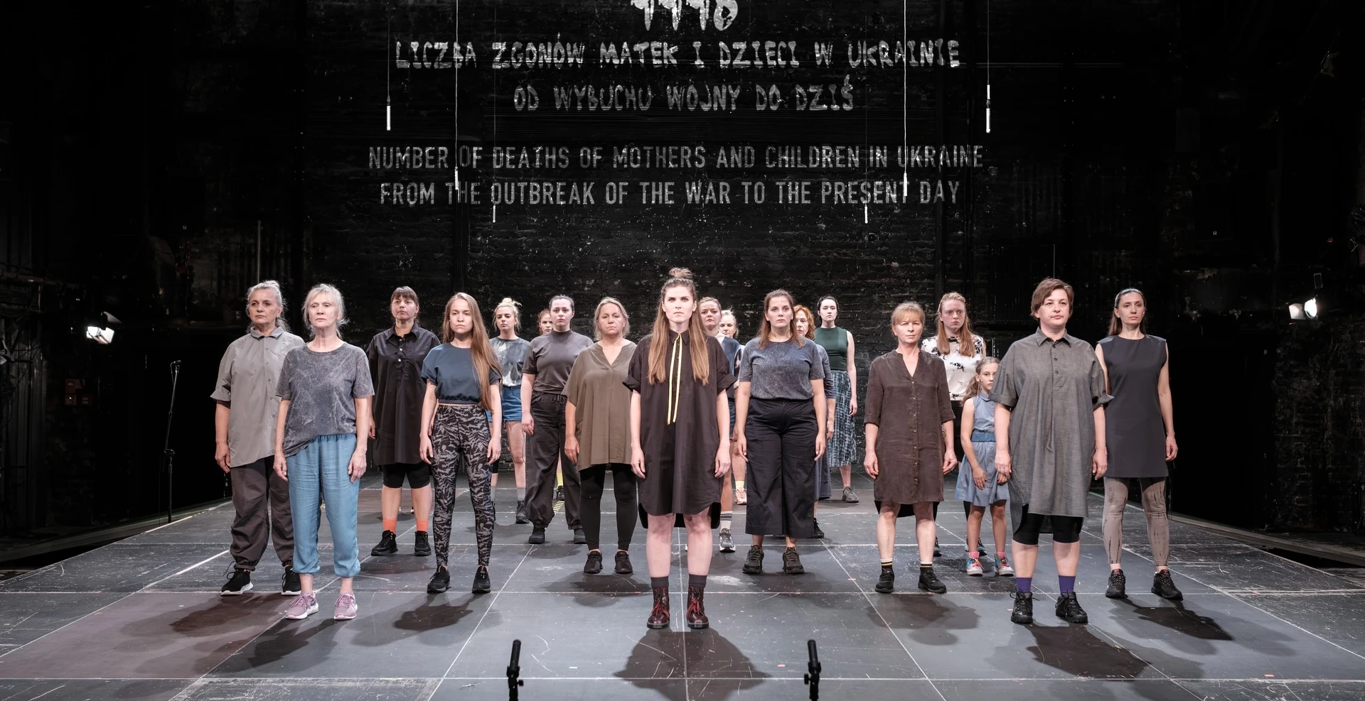 In August 2023, Polish director Marta Górnicka showed a preview of "Mothers" for the first time at the Cour du Musee Calvet in Avignon, deeply shocking the festival audience. On her return to Avignon in 2024, 6,000 spectators celebrated the performance. 21 women aged between 9 and 72 from Ukraine, Belarus and Poland unite their voices in an outcry against Russia's war of aggression against Ukraine. The premiere of "Mothers - A Song for Wartime" took place at the Teatr Powszechny in Warsaw, the German premiere at the Maxim Gorki Theatre in Berlin. This was followed by many guest performances throughout Europe. In "Mothers", Górnicka and her ensemble use concentrated, collective vocal power and plenty of warmth, solidarity and poetry against the inhumanity of this and every other war in the world. The performance, which has lost none of its troubling topicality, begins with a Shchedrivka (Ukrainian: щедрівка) - a traditional Ukrainian song wishing for happiness and rebirth. Marta Górnicka conducts the choir from the audience, creating a lively connection with the singers. The traditional songs are interspersed with nursery rhymes, incantations and political commentary.
