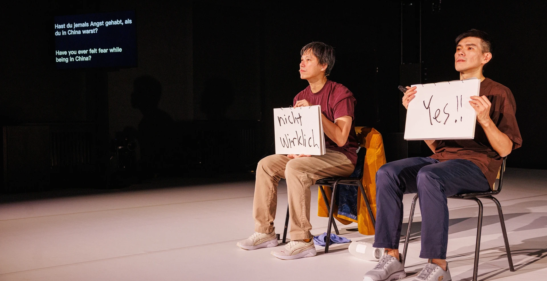 In a joint process with a team of artists from Taiwan, Singapore and China, a touching duet was created, a portrait of two extraordinary dancers and the political systems that characterise them. Chou and Lee revisit their different dance biographies on stage, switching between movement and language, between togetherness and juxtaposition, and using their bodies to sense how personal life paths and global political conflicts intertwine.