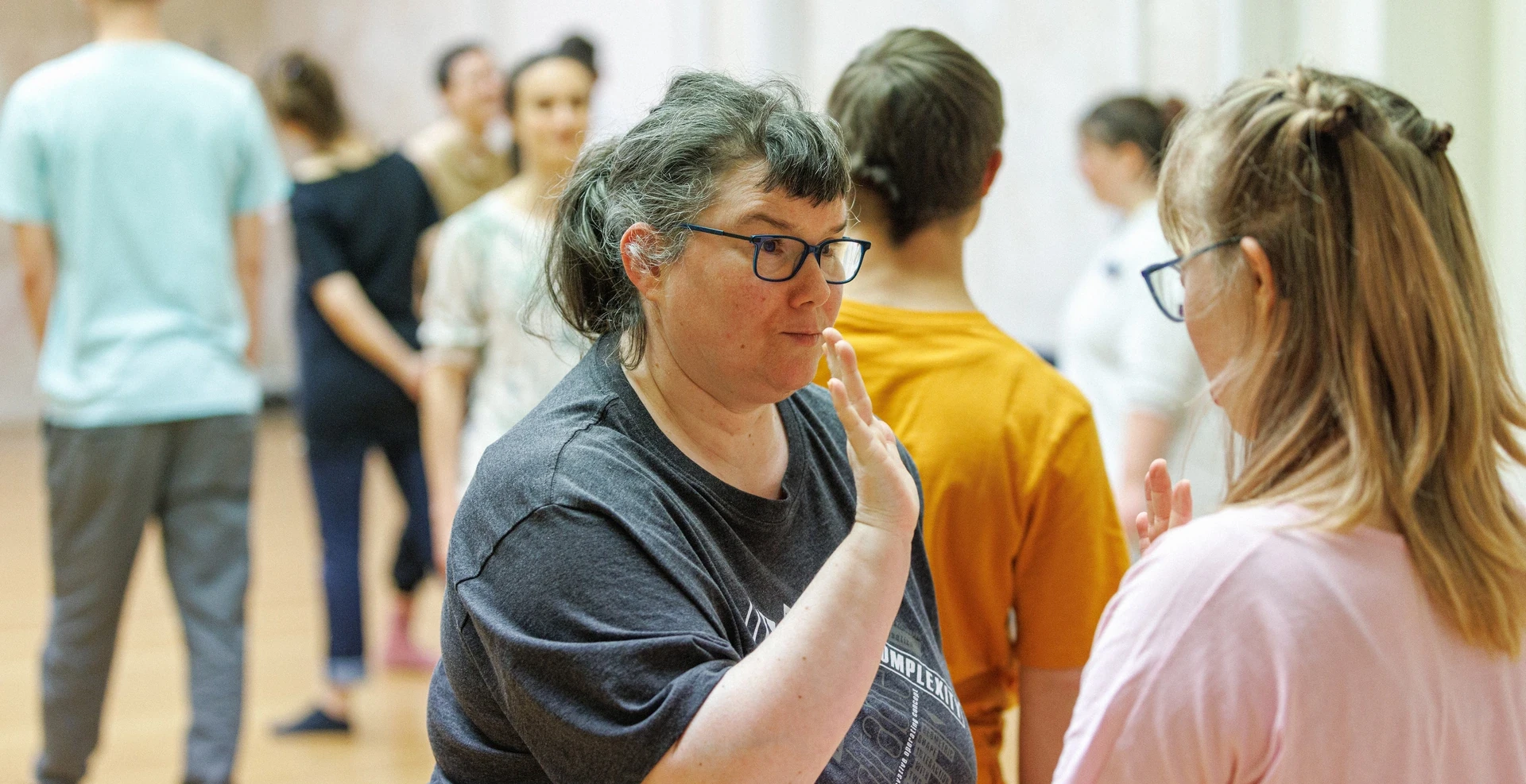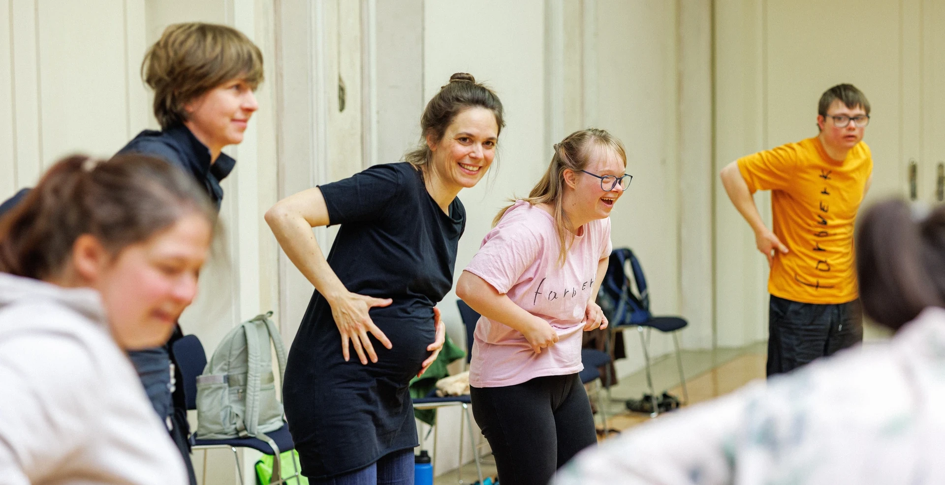 The farbLAB workshop series was launched as part of the 2023/24 season in cooperation with the inclusive art and culture association farbwerk e.V., which creates artistic meeting spaces for people with and without disabilities in Dresden and sees creativity as an equal cultural position. The workshops were led by inclusive teams from the fields of dance, theatre and music and were aimed at artists, art mediators and all those who are curious about inclusive work.