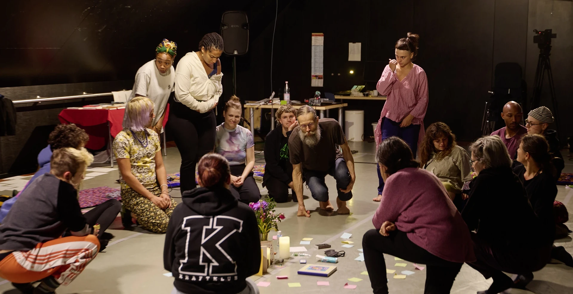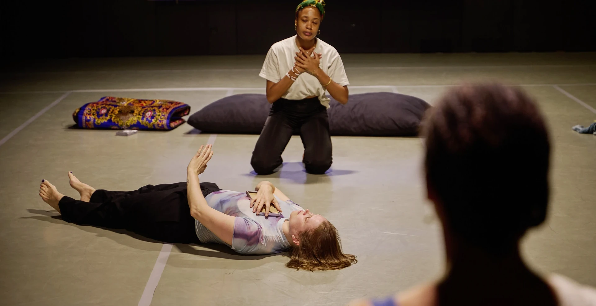 Since their collaboration for the #yodo -you only die once residency at Heizhaus Berlin in autumn 2023, they have formed a unique trio. With different backgrounds and interests such as traditional and urban African dance, drama, political organisation, end-of-life care, dance education and poetic research, the three want to develop immersive artistic formats that invite people to come into contact with death, dying, mourning and the understanding of care work. They curate spaces in a unique way to open up, share and learn together about these topics that are otherwise culturally marginalised in Western contexts. Part of their emerging research consists of visiting dying people in local hospices, inviting experts on death and grief to share and question different artistic practices and scores.